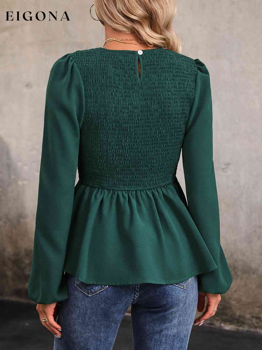 Round Neck Smocked Balloon Sleeve Top
