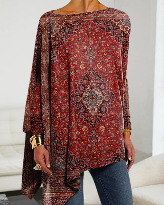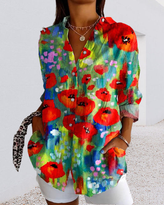 Temperament Long-Sleeved Printed Wide-Leg Suit