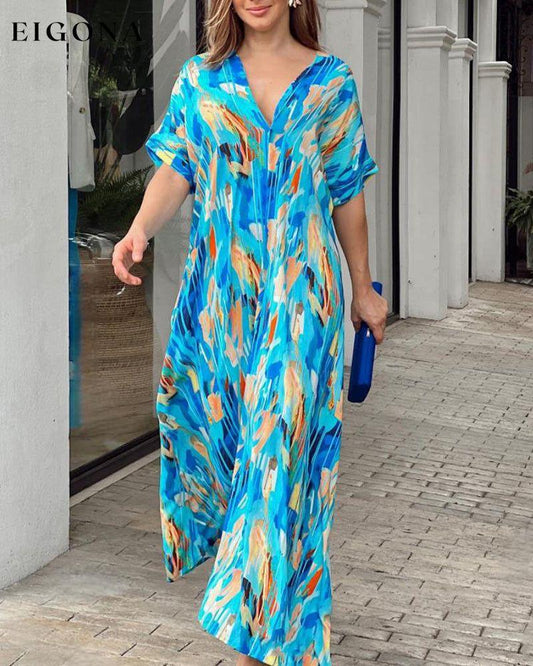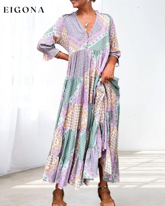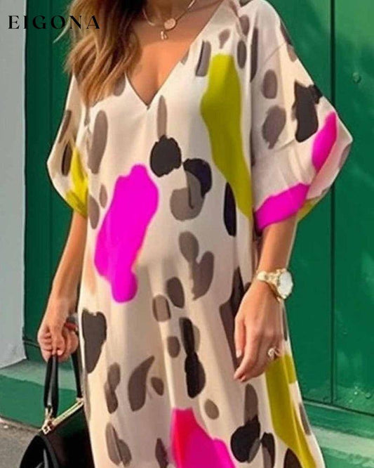 Llamativo vestido con estampado de bloques de color y cuello en V