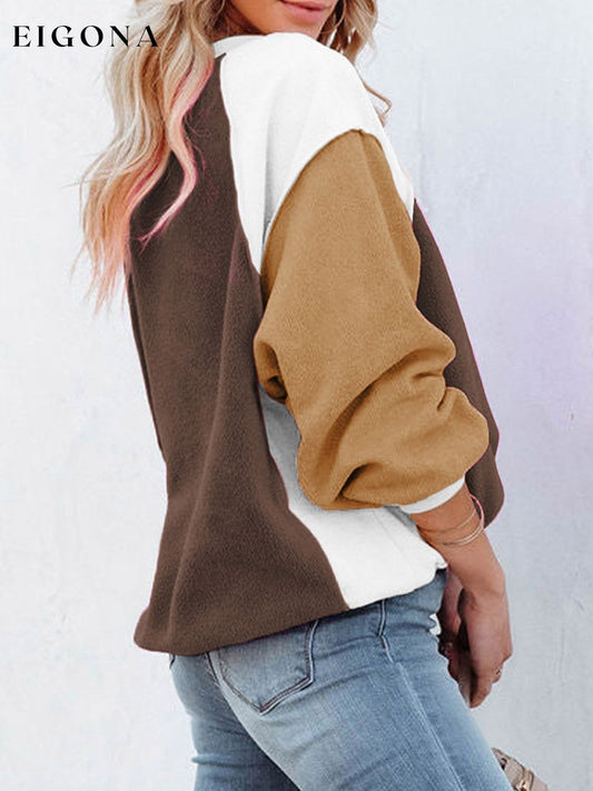 Top tejido de manga larga con cuello redondo y hombros caídos