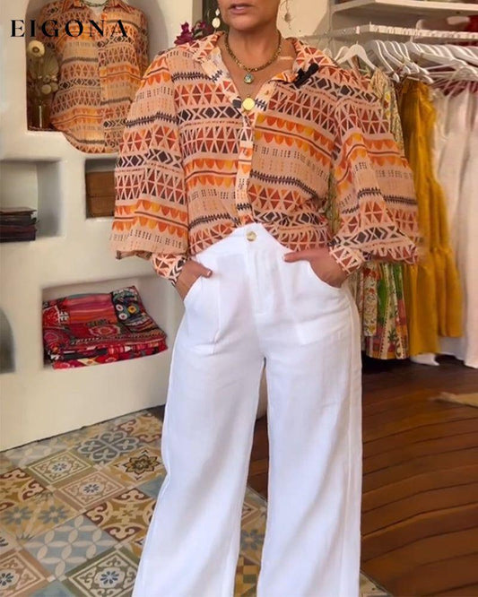Blusa Estampada Colorida con Solapa y Botones