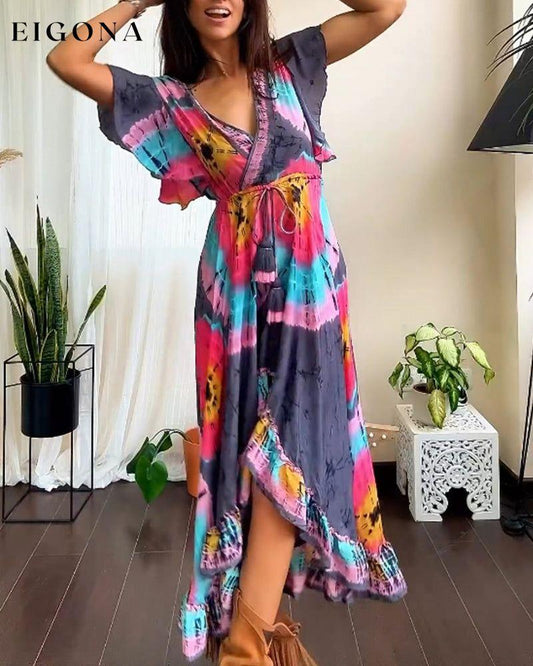 Vestido largo con cordones y manga corta estampado colorido