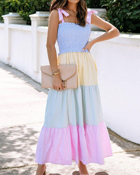 Vestido con tirantes y patchwork en contraste de colores