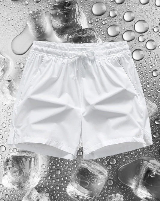 Men Elastic Waist Pocket Quick-Dry Ice Silk Sports Shorts