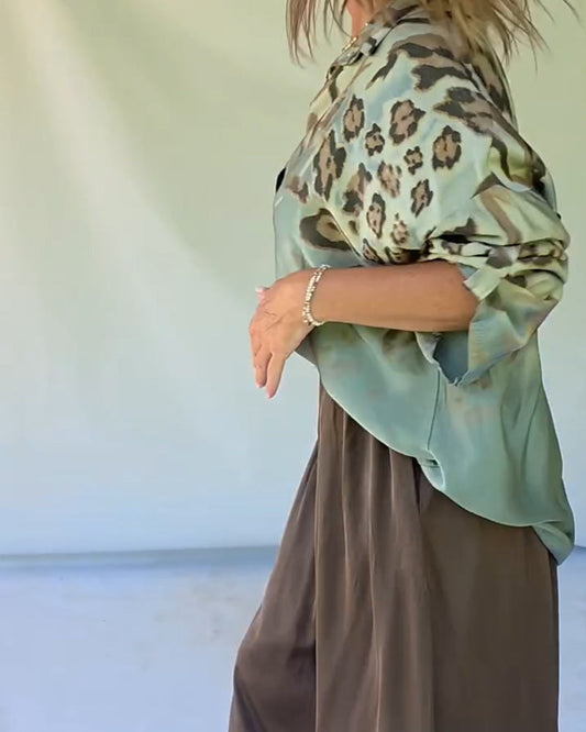 Chic Leopard Print Collared Shirt