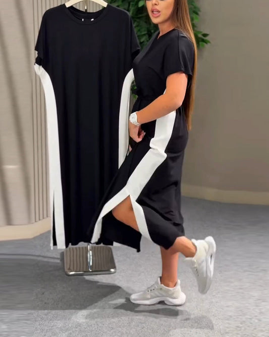Round Neck Patchwork Short Sleeve Dress