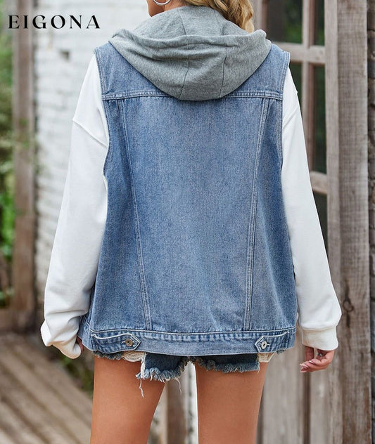 Chaqueta vaquera sin mangas con capucha y bolsillos