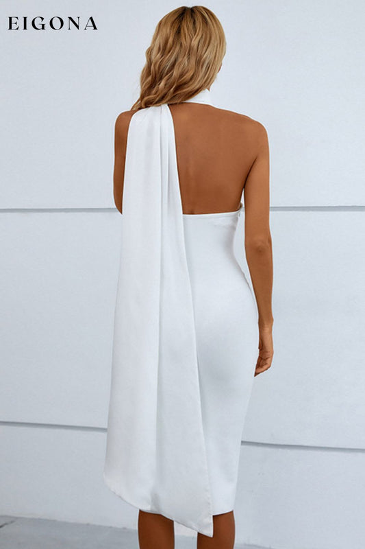 Vestido corto de cóctel fruncido, sin tirantes y con detalle en cascada
