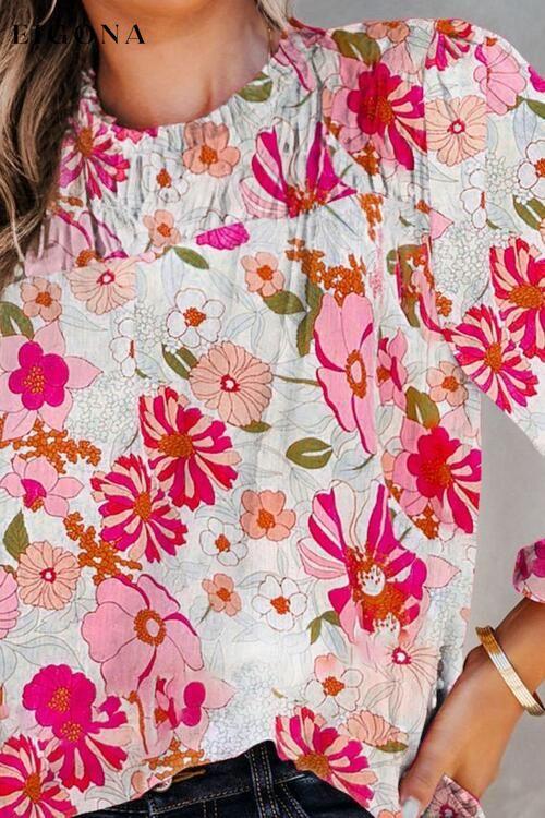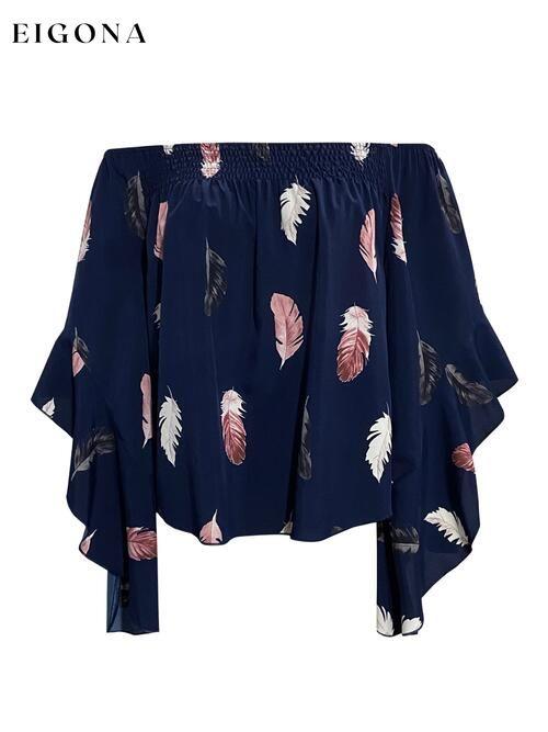 Blusa fruncida con hombros descubiertos y estampado de plumas