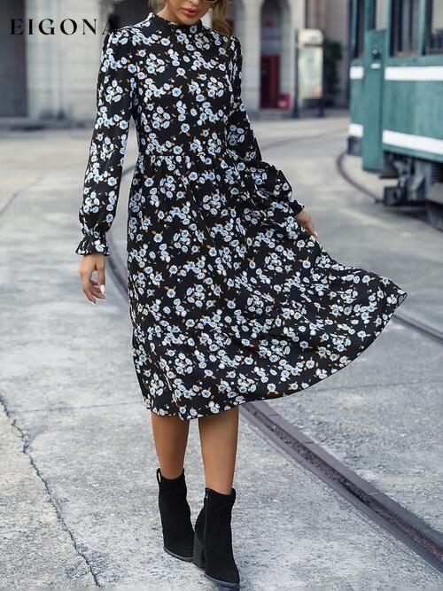 Vestido de cintura de color liso de terciopelo con cuello alto