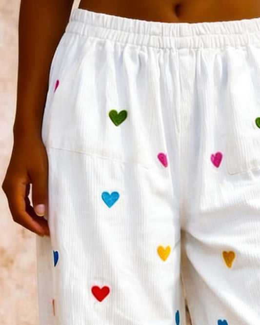 Heart Elastic Waist Wide Leg Cropped Pants