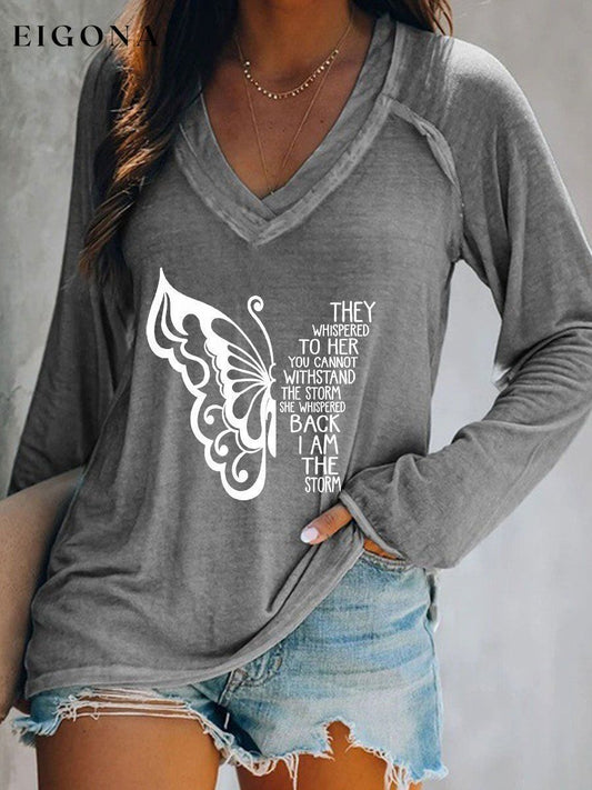 Camiseta con estampado de mariposa para mujer, le susurraron que no puedes soportar la tormenta, ella susurró en la espalda, soy la tormenta