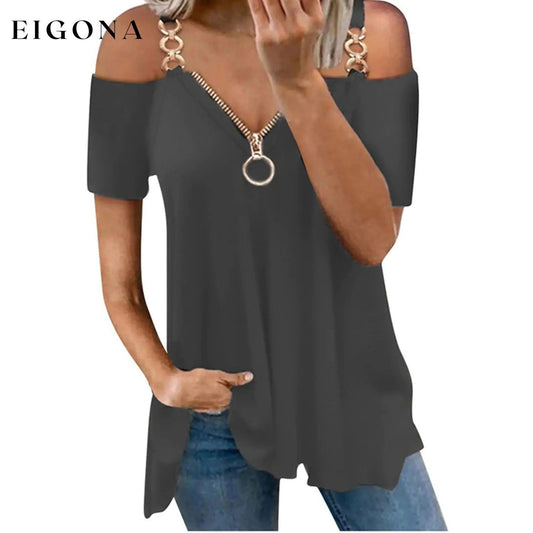 Camiseta de mujer de manga corta con hombros descubiertos y volantes lisos