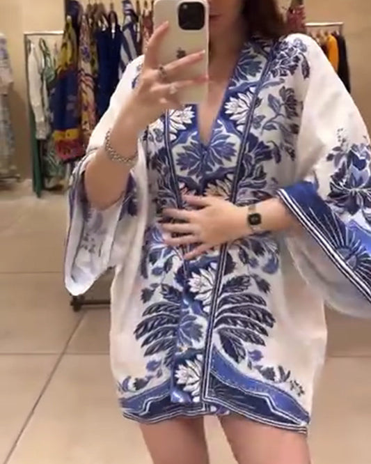 Strapless Two-Piece V-Neck Pleated Print Tankini