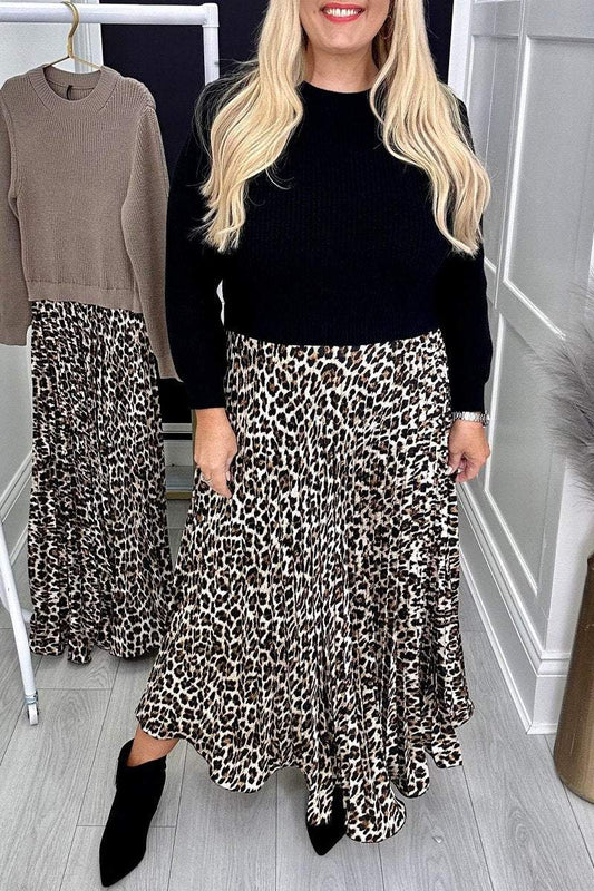Women's Round Neck Leopard Print Dress