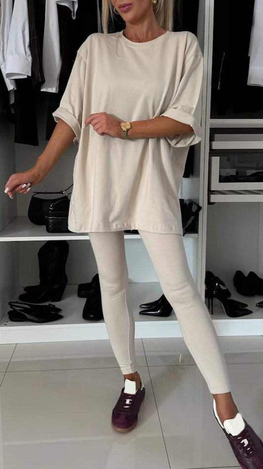 Women's Round Neck Long Sleeve Casual Sweatshirt Suit