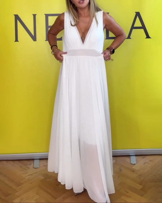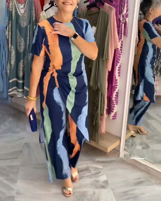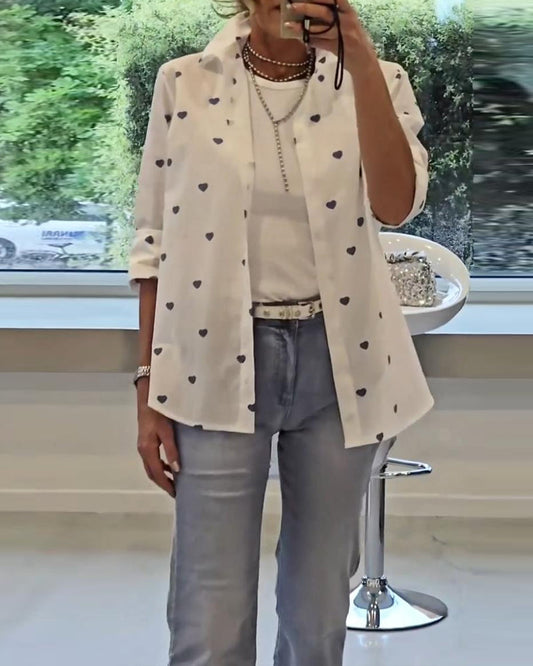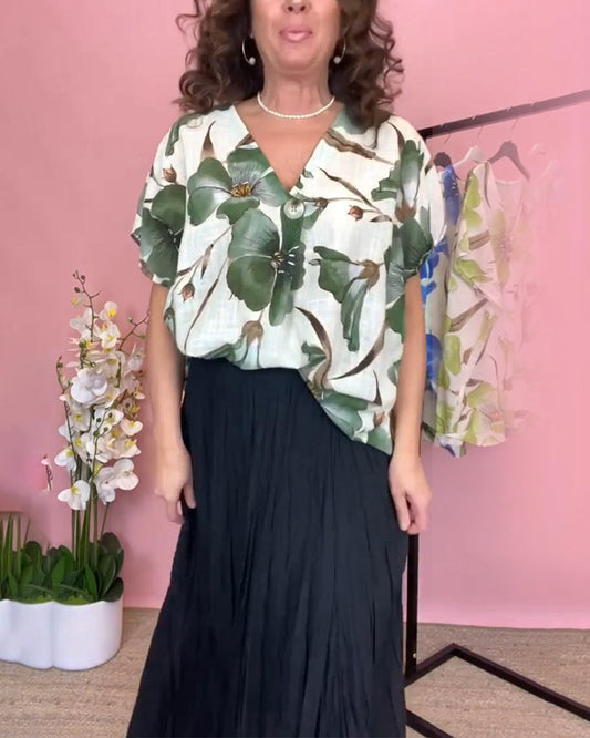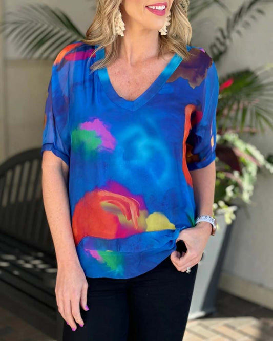 Blouse ample imprimée, col en V, dos nu, manches mi-longues