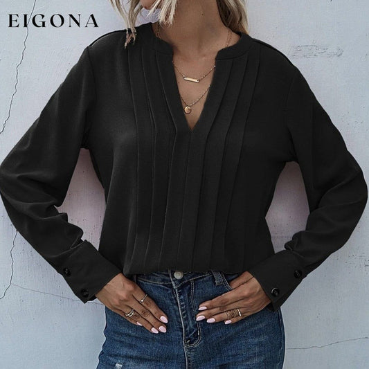 Blouse décorative plissée à col cranté