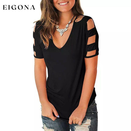 T-shirt à manches courtes et épaules dénudées pour femme, haut décolleté en V profond