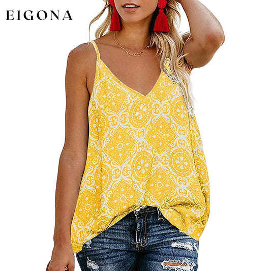 Débardeur bohème à fleurs pour femmes, col en V, bretelles Spaghetti, chemises d'été sans manches, chemisier