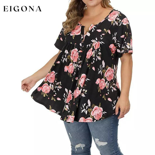 Chemises Henley pour femmes, tunique florale, chemisiers à manches courtes