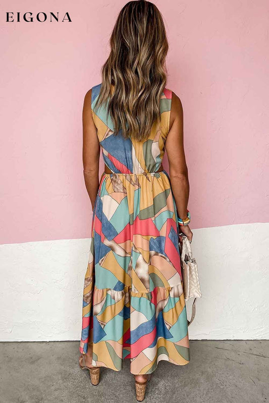 Robe longue sans manches à découpes et joint torique imprimé bohème