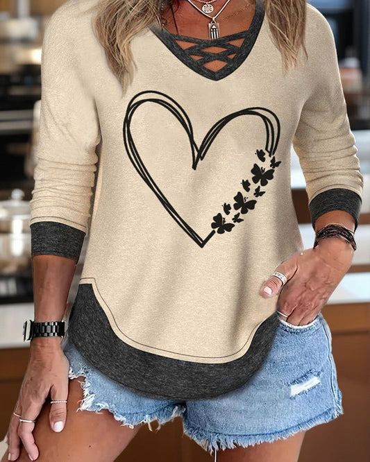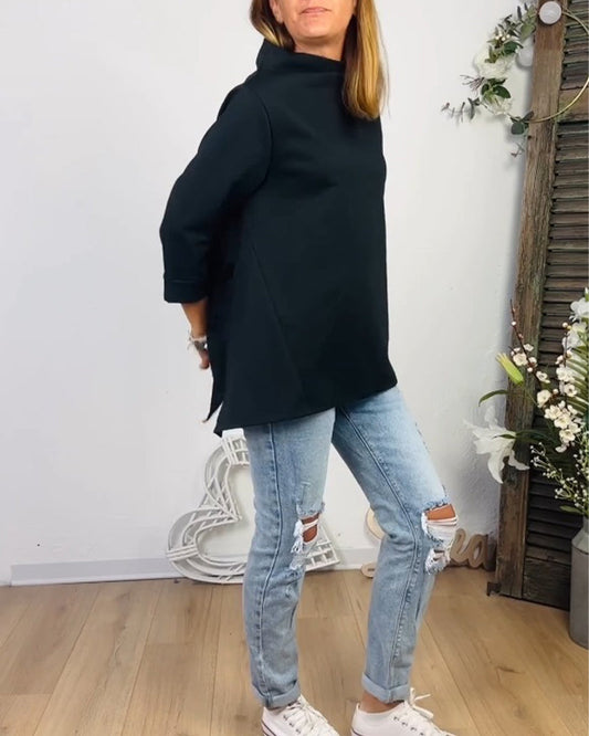 Felpa casual da donna con scollo tondo e cuciture a contrasto, a maniche lunghe