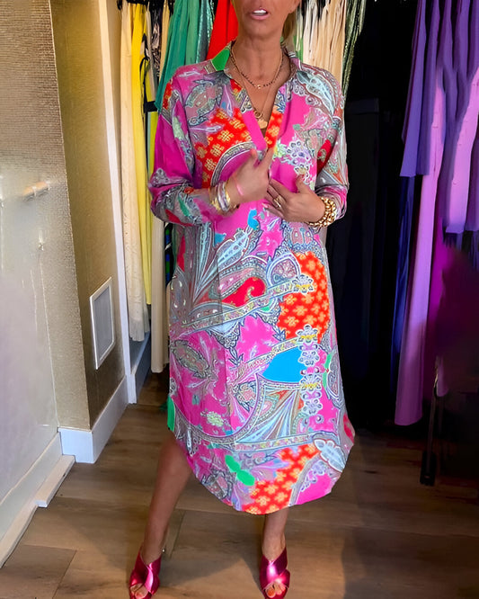 Abito a maniche lunghe con scollo tondo e colori a contrasto retrò