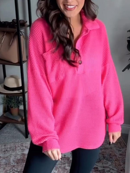 Top a maniche lunghe con risvolto e motivo a nido d'ape casual da donna