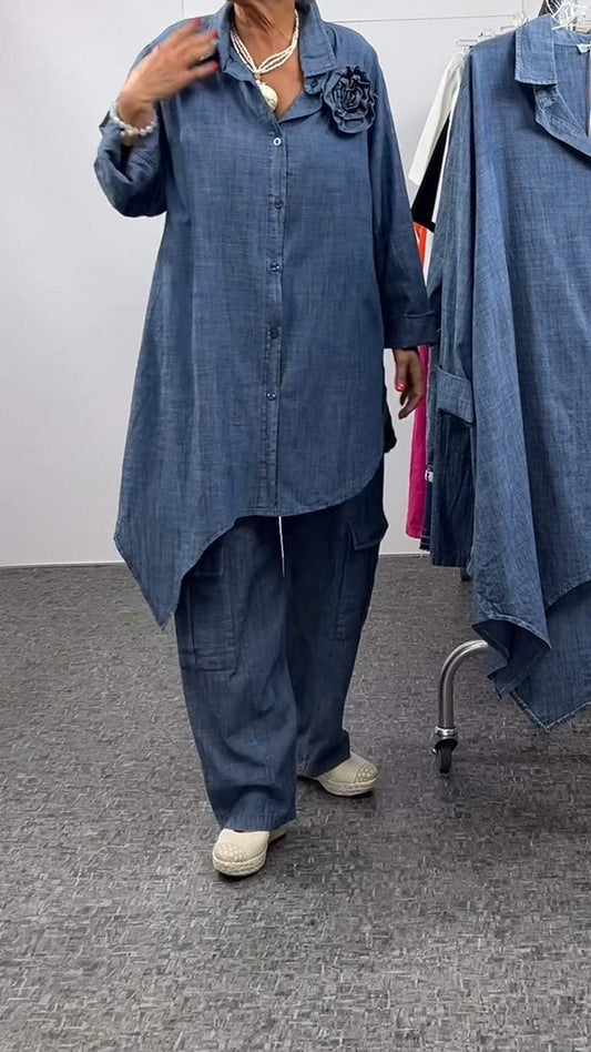 Tuta casual da lavoro a maniche lunghe con risvolto da donna