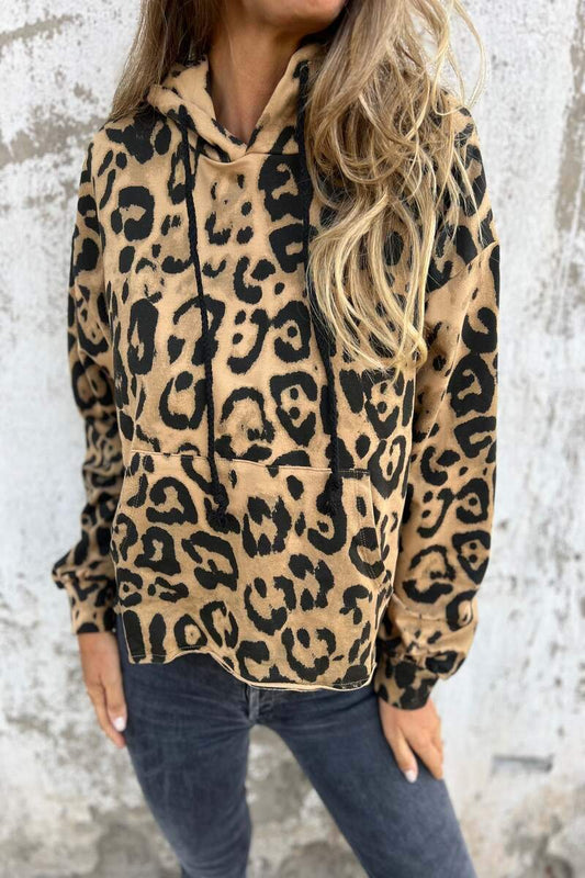 Women 's Leopard Print Hooded Long Sleeved Hoodie Top
