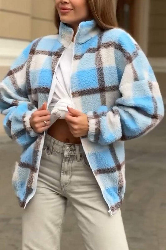 Women's Round Neck Long Sleeve Plush Patchwork Coat