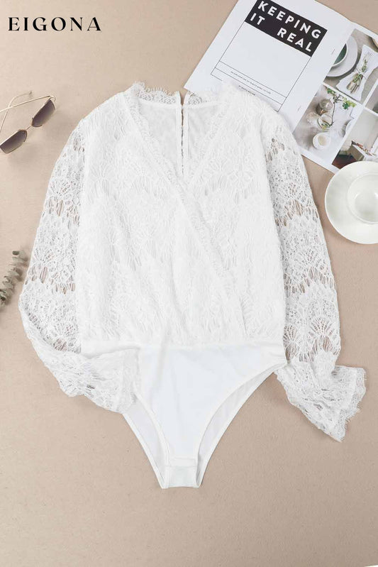 Body cache-cœur à manches longues et col en V en dentelle blanche