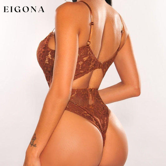 Teddy à bretelles en dentelle rouge avec épissure en maille et col en V