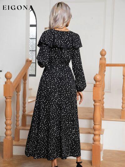 Robe fendue à manches longues et nouée sur le devant à pois