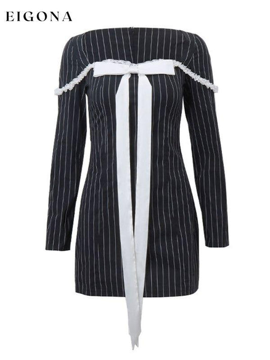 Mini robe française Sexy à manches longues, nouveau style français, col carré, nœud papillon, rayée, manches longues