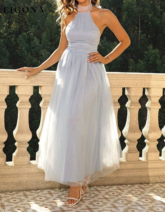 Robe longue fendue au dos avec bretelles spaghetti et lacets
