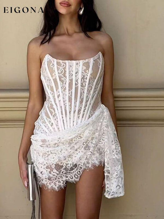 Robe Corset Sexy en dentelle transparente pour femmes, épissure à la taille, courte, Sexy