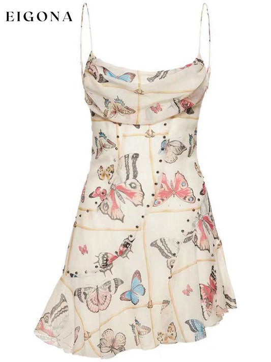 Robe sexy dos nu à bretelles, imprimé papillon, style français, pur désir, nouvelle collection