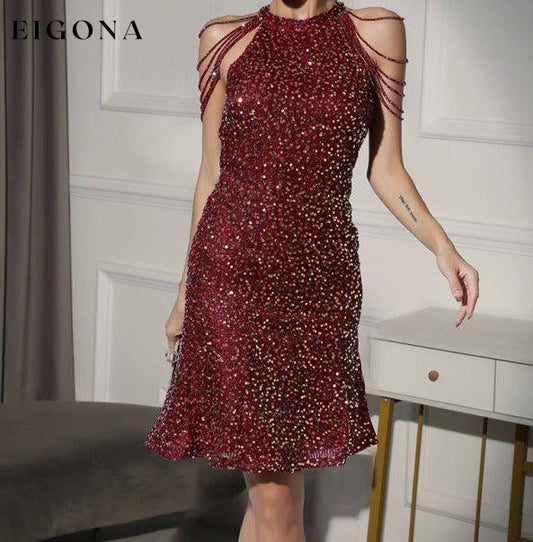 Robe de soirée sexy à paillettes, col licou, avec pompon en cristal, près des hanches, taille moyenne, nouvelle collection