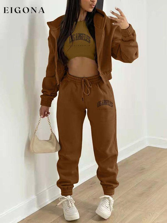 Nouvelle combinaison de sport et de loisirs à capuche imprimée avec lettres (ensemble trois pièces)