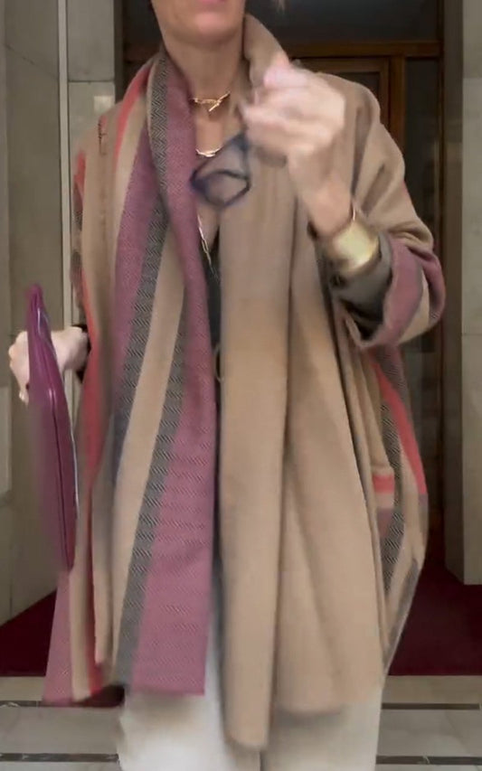 Poncho en tricot torsadé avec bordure en fausse fourrure