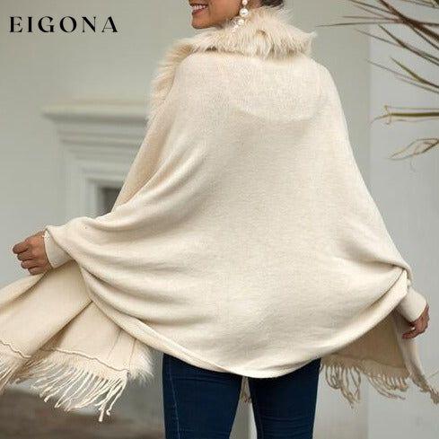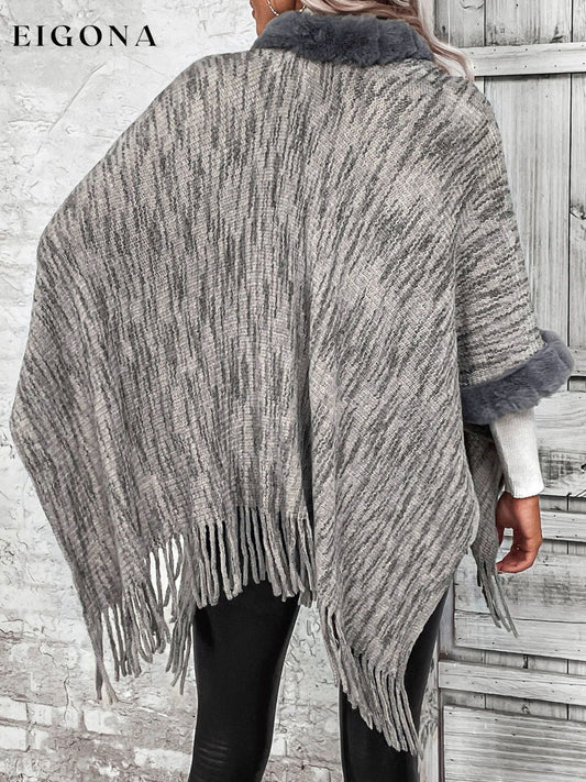 Poncho ouvert en fausse fourrure avec ourlet à franges sur le devant
