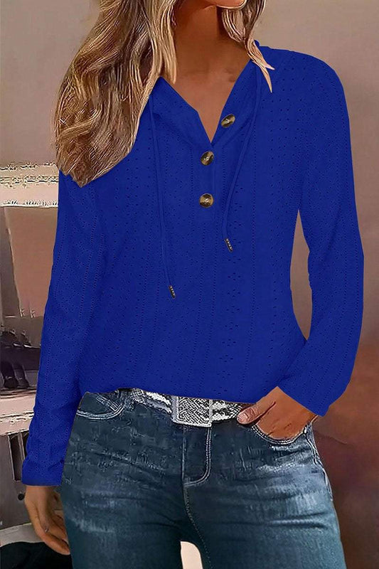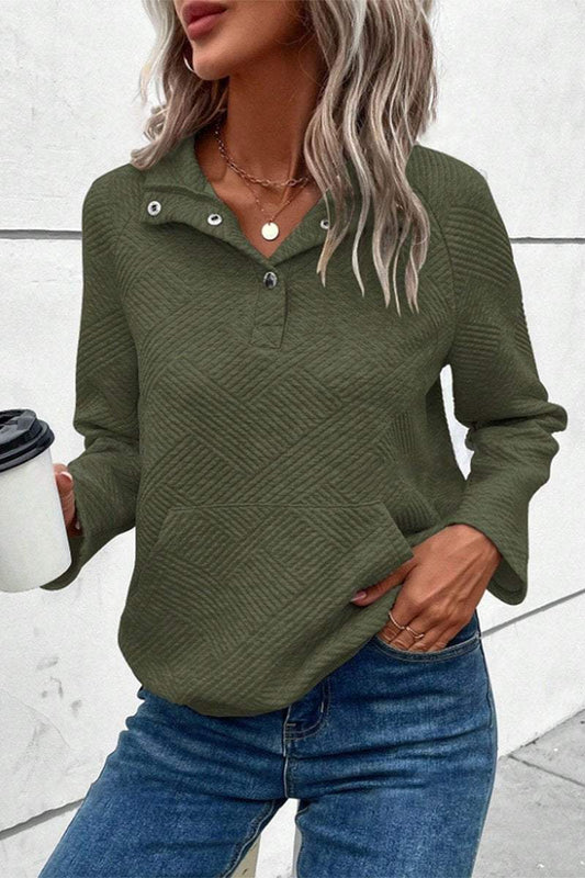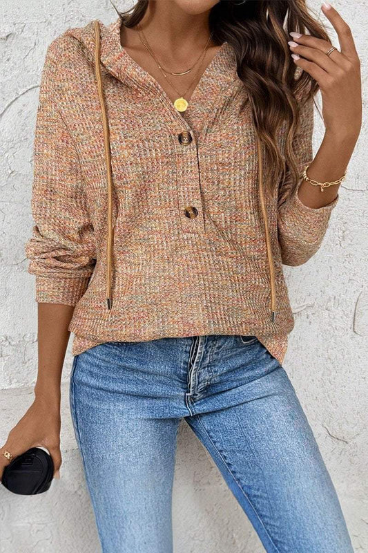 Women's Casual Waffle Knit V-Neck Pullover Top