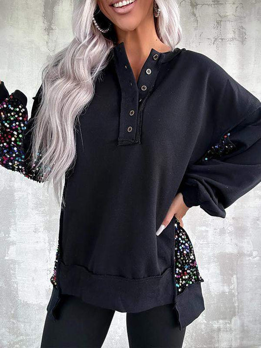 Women's Casual Solid Color Sequined Patchwork Shirt