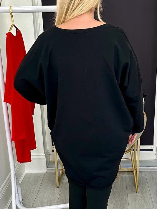 Women's Slim Fit Sequined Contrast Patchwork V-neck Top