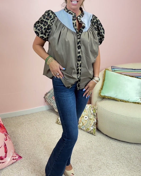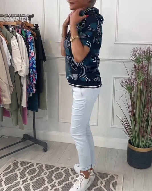 Manteau à manches courtes à revers imprimé contrasté rétro