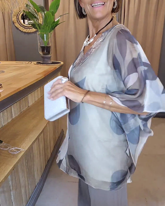 Robe irrégulière imprimée à manches trois-quarts en forme de V