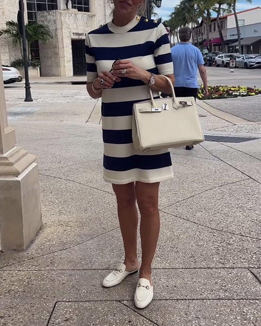 Robe-pull à manches courtes et imprimé à rayures contrastées