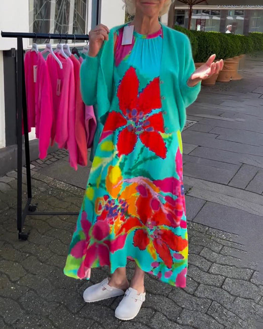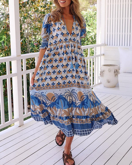 Robe élégante à imprimé coloré, col carré, manches bouffantes
